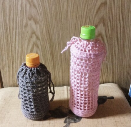 ペットボトルカバーをかぎ針編みで作りました。「輪を作って底の部分から、編み始めます」「鎖3目で立ち上がり…」。説明を聞き、編み図を見ながら、セッセと編み進みました。途中、おしゃべりの花が咲き賑やかでした。でも、難聴者はおしゃべりが聞こえないので、文字を読むこと、口元を読むことに集中してしまい、手が止まってしまうのです。『ながら族』だった私たちも、今は『編みながらおしゃべりすること』ができなくなりました。