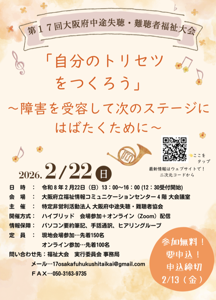 問い合わせ先:大阪府中途失聴・難聴者協会 事務局
